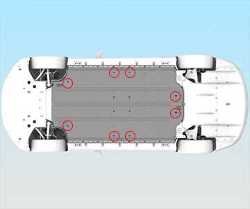 Loosely install new HV battery rocker bolts (x16) on both sides with a battery powered drill, and then torque the bolts.
