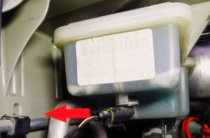 - Disconnect the connector of the coolant reservoir level sensor.