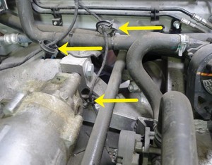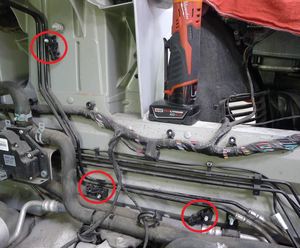- Release the omega clips (x2) that secure the harnesses and the clip that secures the harness to the RH steering rack stanchion.