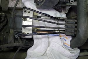 from underneath the 4-line bundle at ABS hydraulic unit.