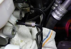 - Clean the areas around the master cylinder and ABS module and put shop rags under the brake lines.