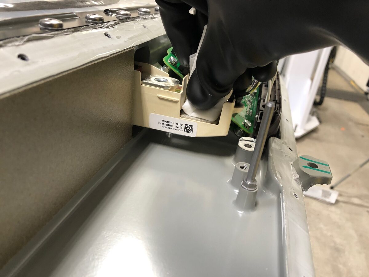 - Use the ESD-safe vacuum to clean the areas that were covered by sealant, and inside the ancillary tray.