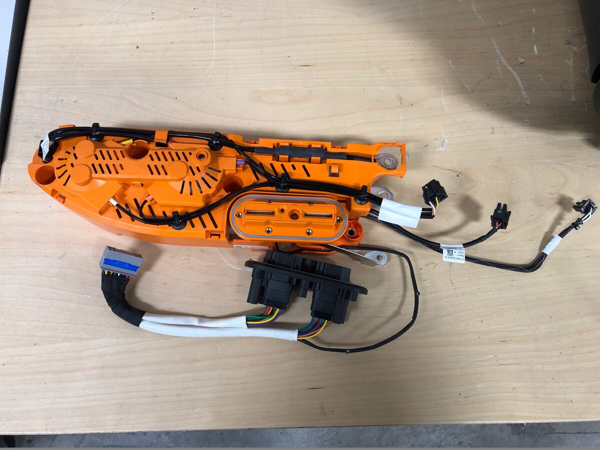 - Route the large LV Rapid Mate harness along the rear RH side of the ancillary tray, and then connect the harness to the ancillary tray circuit board RH side connector. Perform a “push-pull-push” check at the connector to make sure that it is properly secured.
