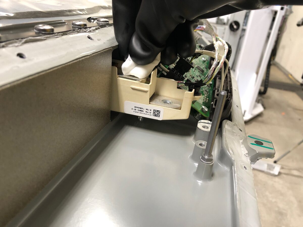 - Connect the shunt and HV sense harnesses to the ancillary tray circuit board connectors. Perform a “push-pull-push” check at the connectors to make sure that they are properly secured.