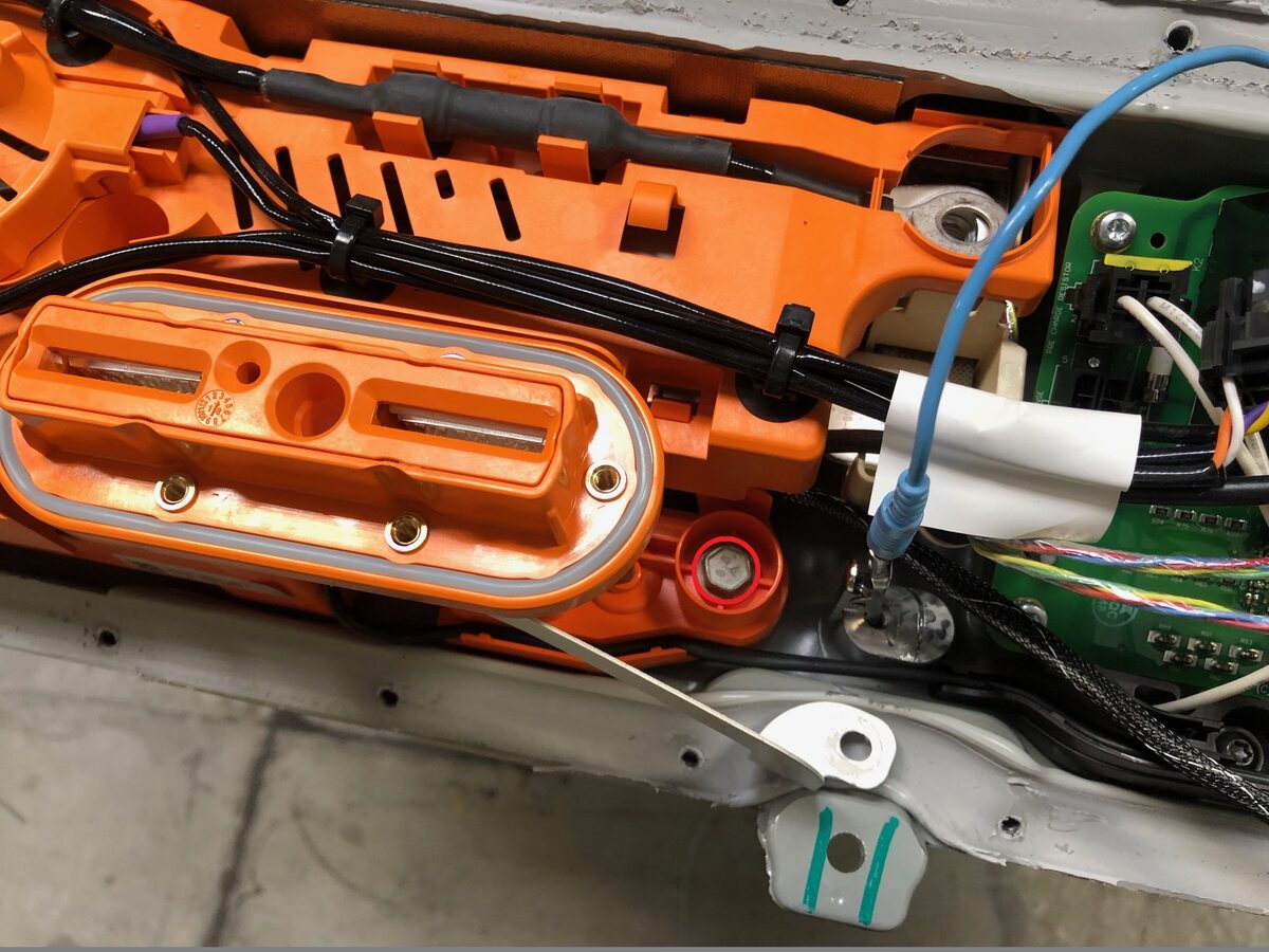 Put a piece of tape along the rear of the HV battery to prevent accidental removal of any fasteners that attach the pack cover.