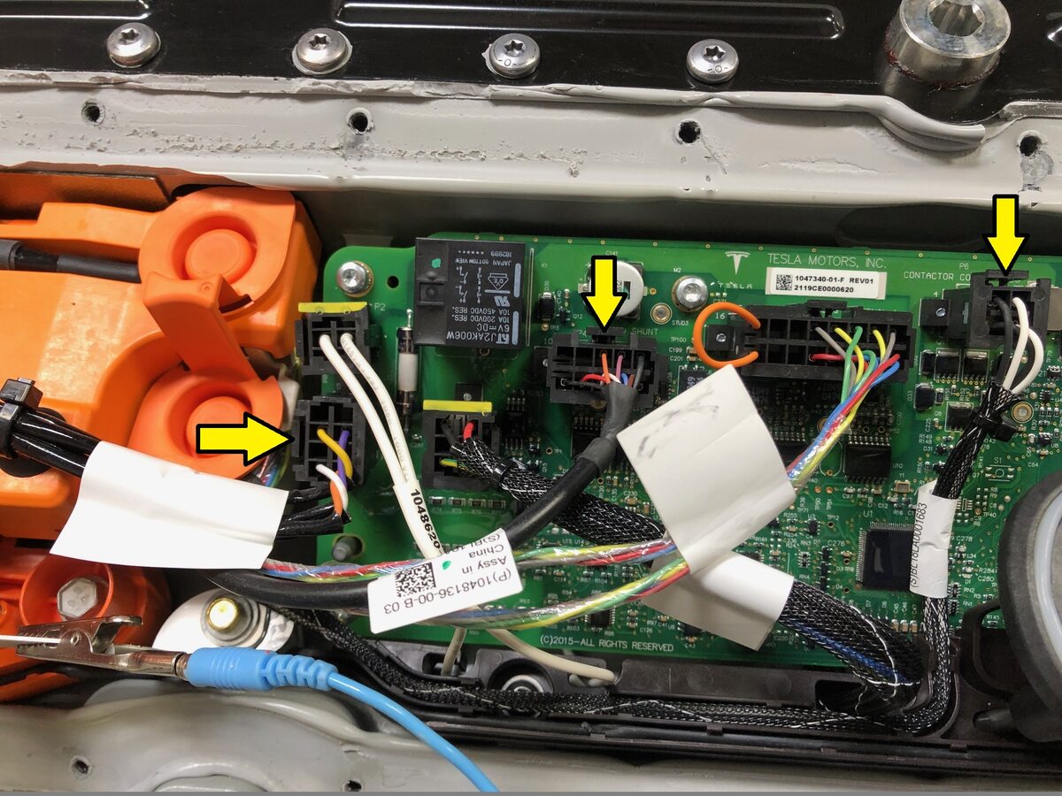 Disconnect HV sense harness, shunt harness, and pack contactor harness from the ancillary tray circuit board.
