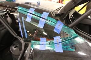 - Apply painter's tape to the body panel adjacent to the rear quarter window glass.