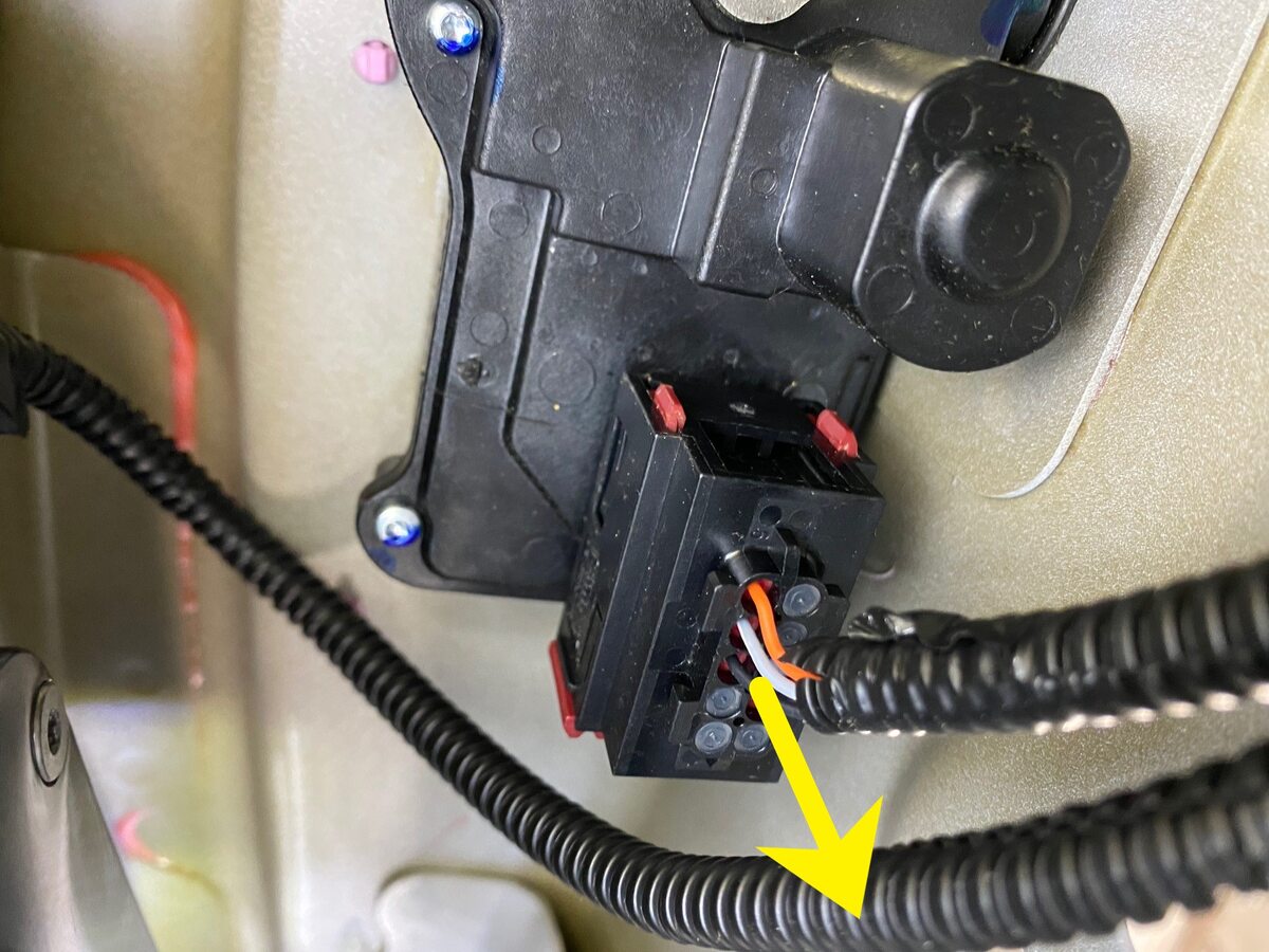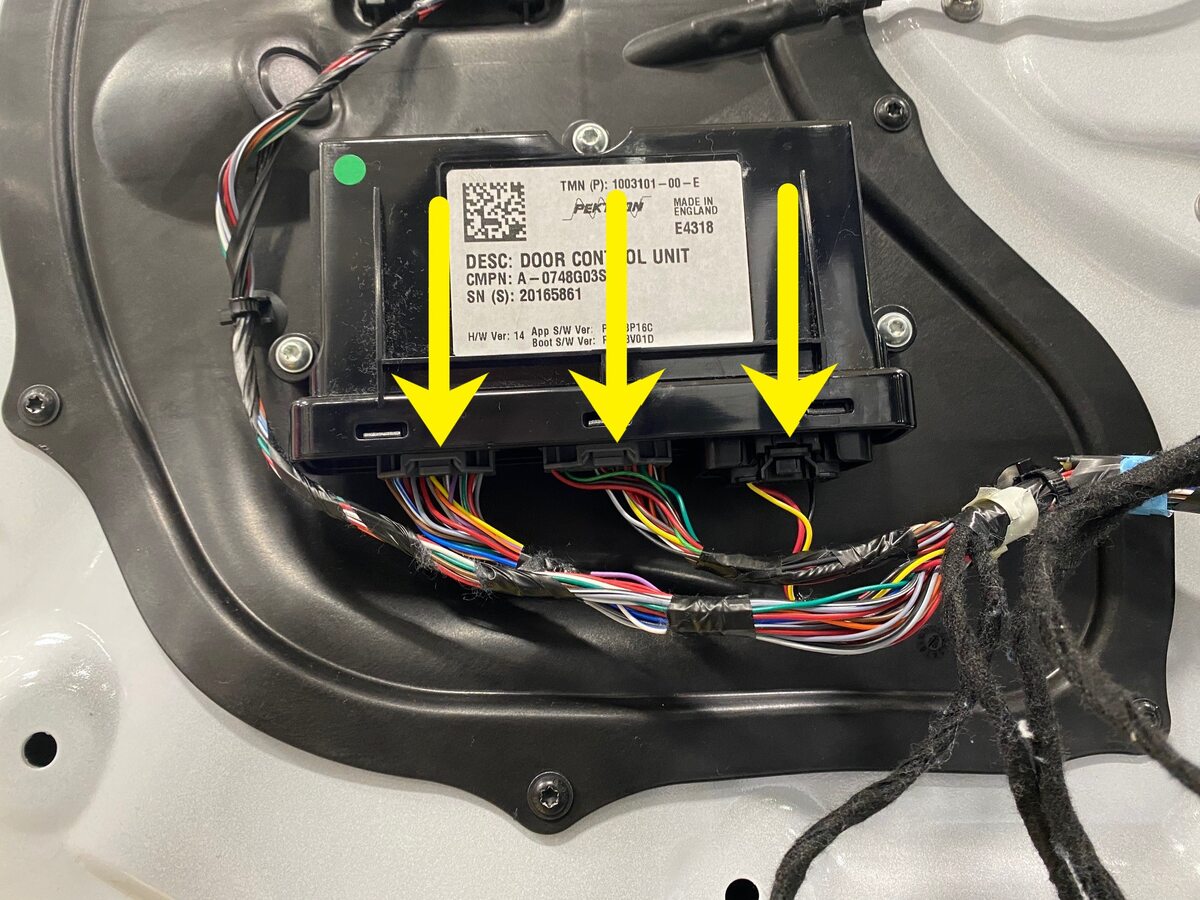 - Disconnect the door harness connectors (x3) to the door control unit.