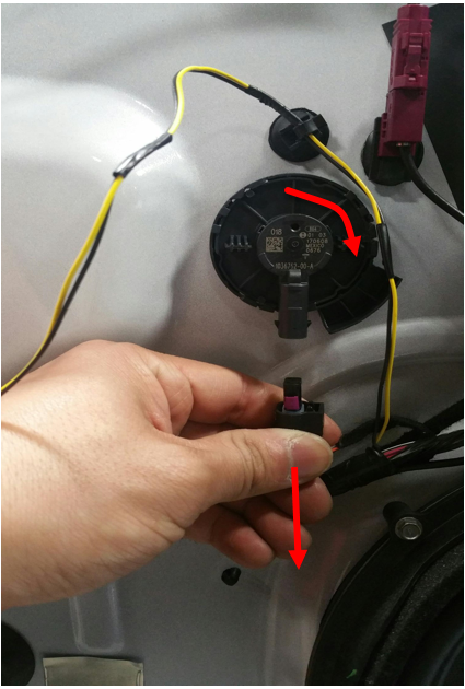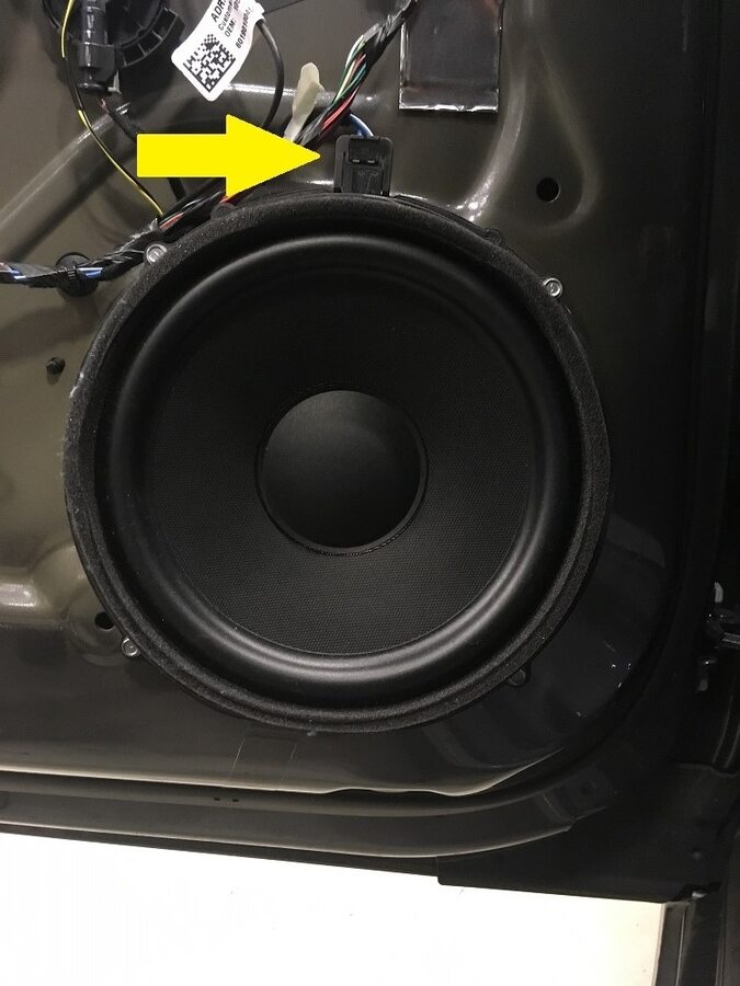 - Disconnect the door harness connector to LH front door speaker.