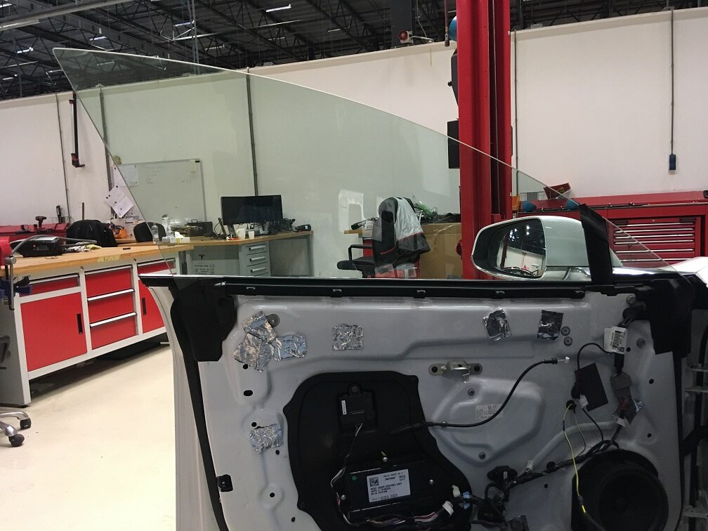NotePlace door glass in a safe area while working on the vehicle to prevent damage.