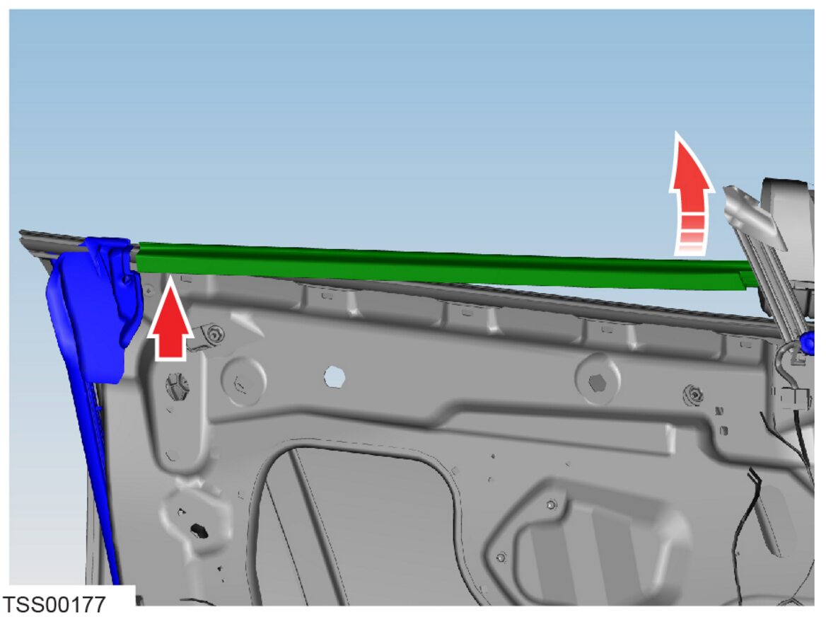 NoteCycle the LH front window, and listen and look for contact between the regulator and the wiring harness during operation. Make sure that the door handle harness and connectors are clear of the path of the regulator and moving glass.
