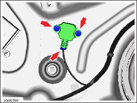 - Install the screws (x3) that attach the regulator motor to the door assembly (torque 2.4 Nm).
