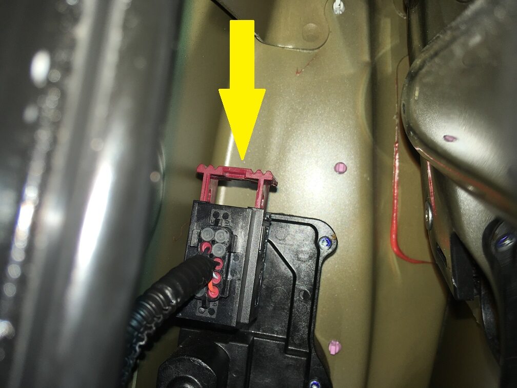 - Disconnect the door harness connector to the door handle controller.