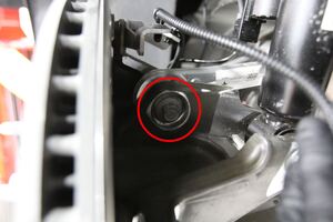 that secures the spring assembly to the knuckle is inserted towards the rear of the