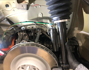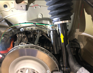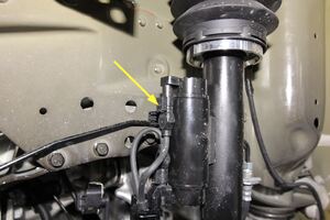NoteRoute the air spring module past the brake line mount, align the module on the mounting studs, and then insert the lower mount to the knuckle.