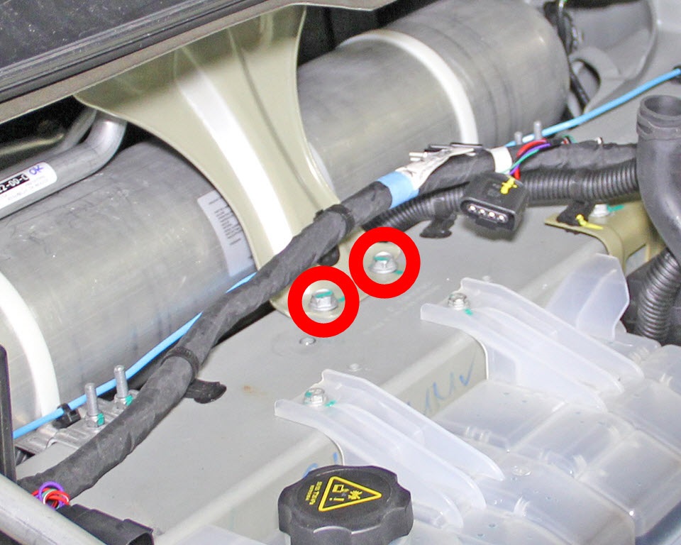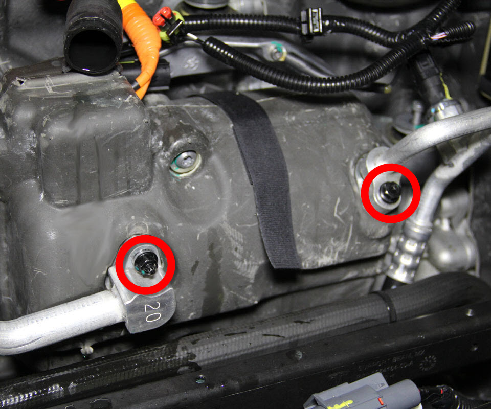 - Release the nuts that attach the A/C lines to the compressor (torque 10 Nm).