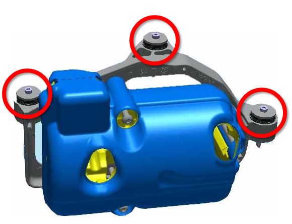 - Have an assistant support the compressor. Remove the bolts (x3) that attach the A/C compressor bracket to the front drive unit (torque 10 Nm).