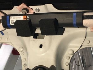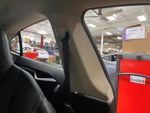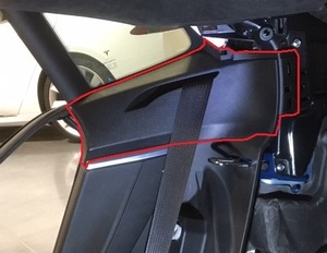 - Install the seat belt and B-pillar guide thru the RH upper B-pillar trim