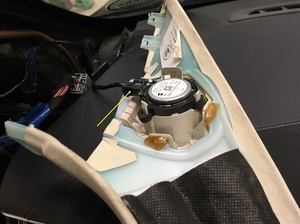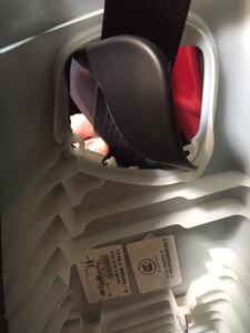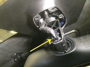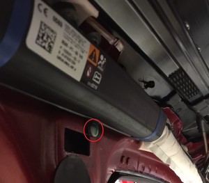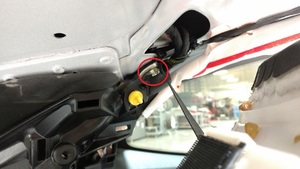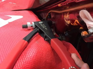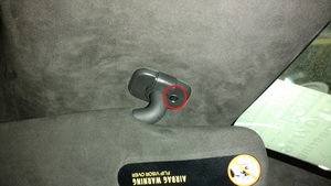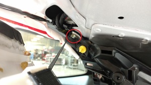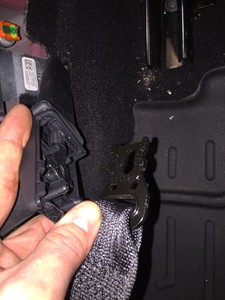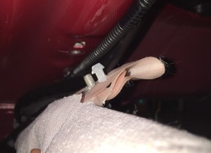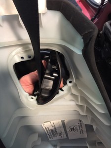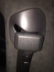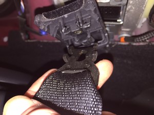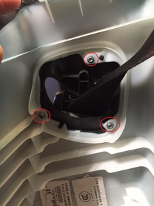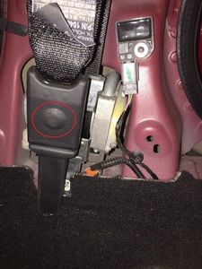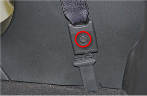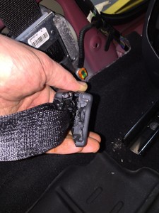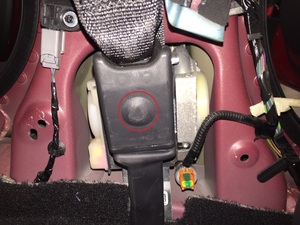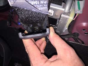 - Remove the plastic grommet that covers the fastener anchoring the LH seat belt to the pre-tensioner