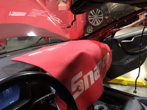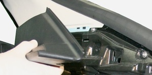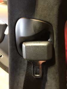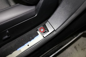- Install plastic cover over the fastener anchoring the LH seat belt to the pre-tensioner