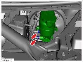 - Remove the nuts and washers (x2) that secure the master cylinder to the brake booster (torque 25 Nm).
