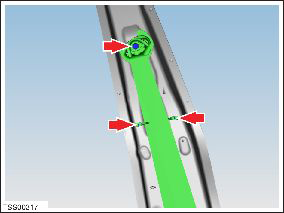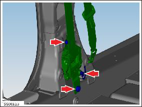- Remove the screws that secure the seatbelt D-ring (torque 25 Nm) and seatbelt guide (torque 5 Nm) to the body.