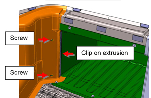 - Pull each side panel away from the screws and release it from the clip on the extrusion at the back of the front trunk.