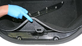 - Remove the lower carpet from the underhood storage area.