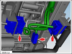 - Release the clips that secure the connectors, then disconnect the seat connectors and harnesses (x3).