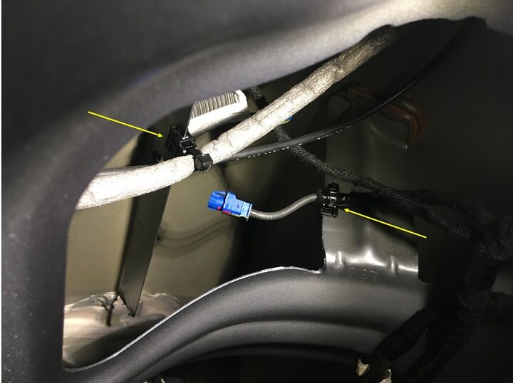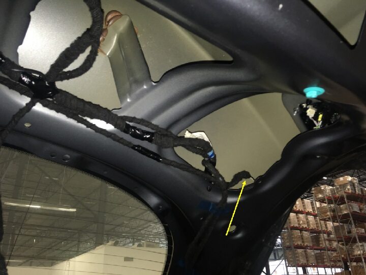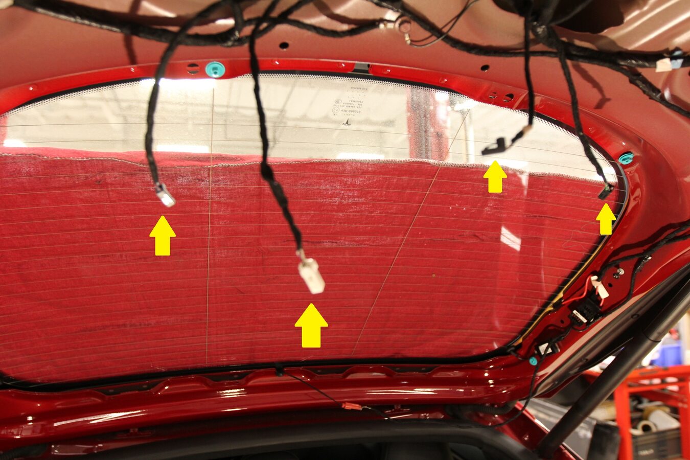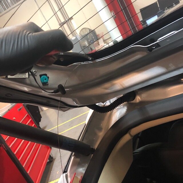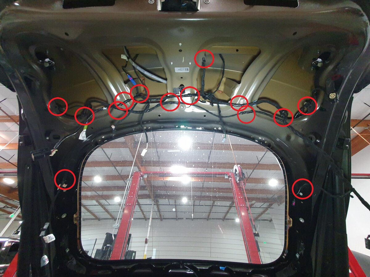 - Secure CHMSL harness to liftgate glass