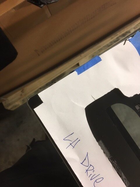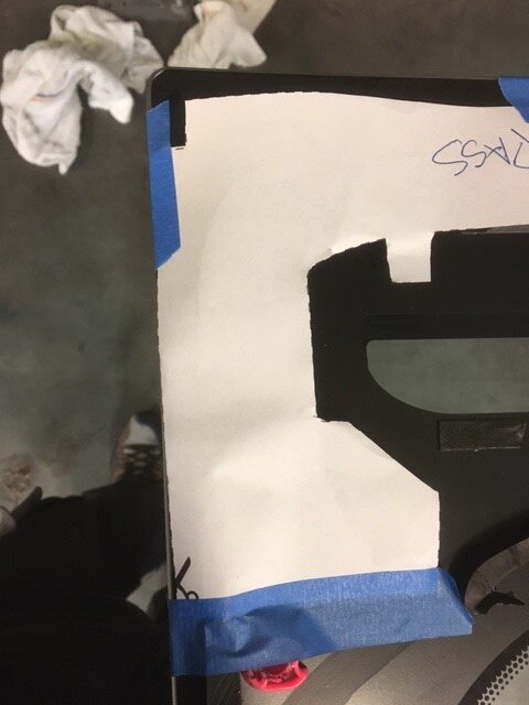 - Place CHMSL templates on liftgate glass in upper corner of glass and secure template with tape