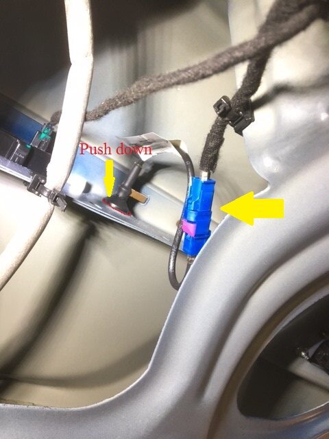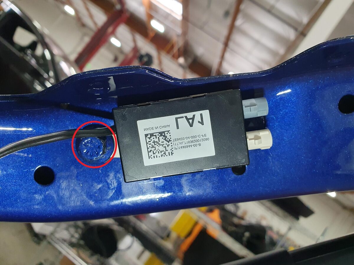 Note1x connector, 1x grommet, Take care not to let the rear view camera drop on the ground when releasing it from the liftgate