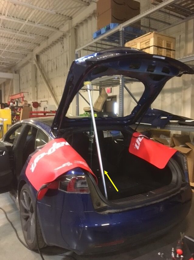 NotePush starter wire tool in between liftgate glass and CHMSL