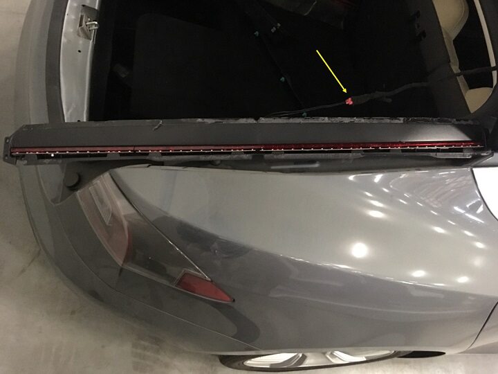NoteHave an assistant depress the brake pedal, Ensure that the CHMSL lights up properly, If any of the LEDs have been damaged, Replace the CHMSL, If wire has been damaged repair wire following bulletin, https://service.teslamotors.com/protected-doc/ServiceBulletins/Internal/SI/SI-17-17-002_Electrical_Harness_Repair_R6.pdf