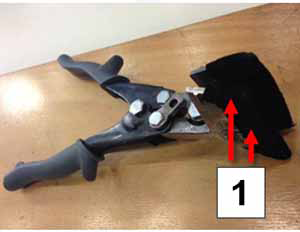 an e-coated metal bracket that has black felt tape attached to the rear edge:CAUTIONTake care not to crack the glass when adjusting the tab.