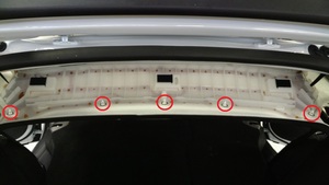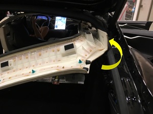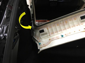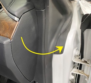 - Reposition headliner above LH front and rear primary body seals