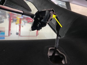 LH A-pillar and remove harness from guide channel