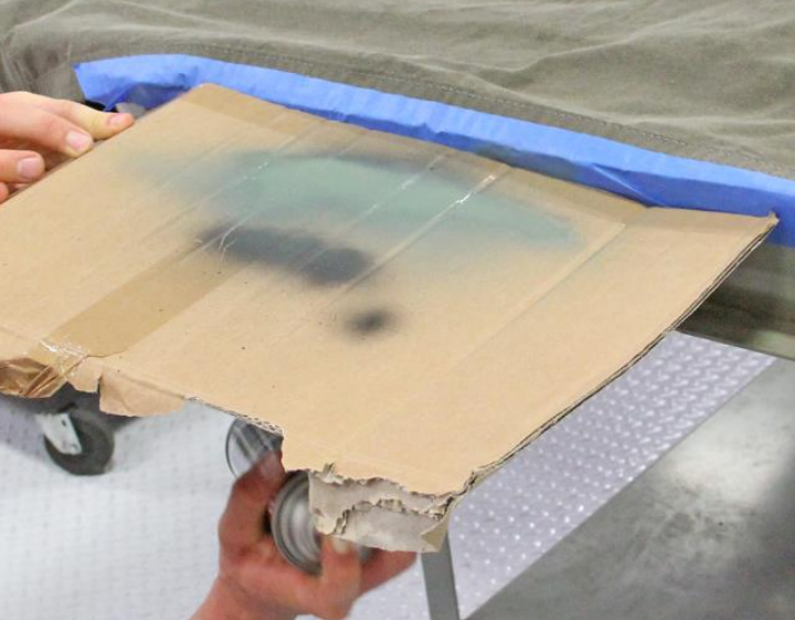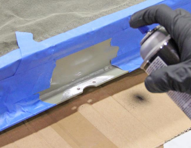 Spray the area around the aeroshield support tab with a thin coat of grey