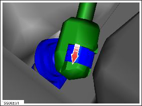 - Position the LH hood gas strut on the body side ball stud, and then install the clip that attaches the strut to the body.