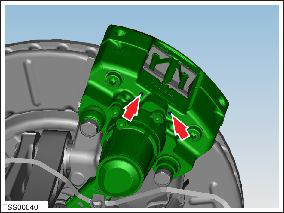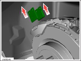 - Release the park brake caliper to make sure the new brake pads will fit. Refer to Park Brake Caliper - Release - Harness Tool - Through Calipers.