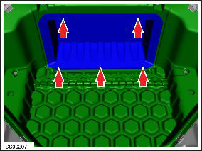 - Remove the screws (x5) that secures the underhood storage extension box to the underhood storage unit.