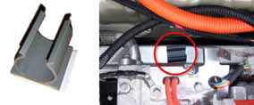- Push the hose into the cable clip on the crossmember until it sits snugly in the clip.