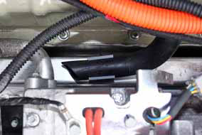 - From the LH footwell, install the hose onto the HVAC nipple.