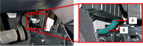 NoteFor vehicles built with the cold weather package between May 31, 2013 and July 11, 2014, a fuse box blocks access to the drain hose from the LH side. Remove the RH closeout extension assembly, then continue with the procedure by accessing the hose from the RH footwell.