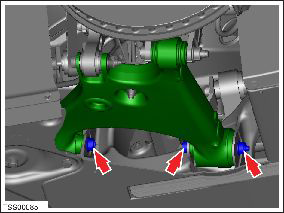 - Remove the nuts and bolts (x2) that attach the LH rear lower control arm to the rear subframe (torque 115 Nm).