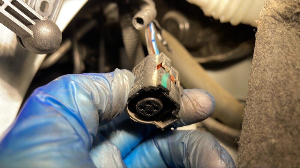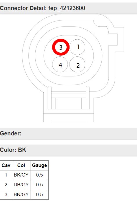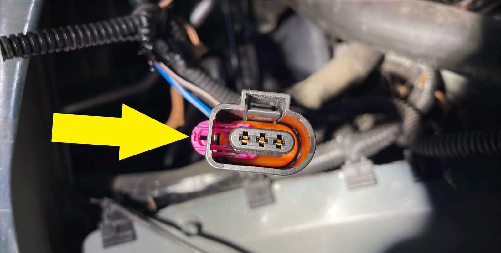 Insert BN-GY wire from pin 3 into pin 2 of new connector