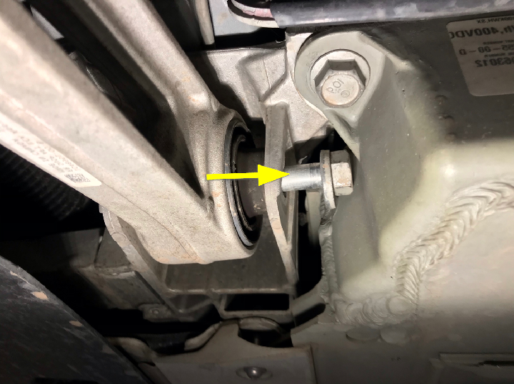 - Slide the bolt out from the aft link until the bolt head is nearly touching the HV battery. This exposes the body of the bolt, which can be cut to allow the bolt to be removed.