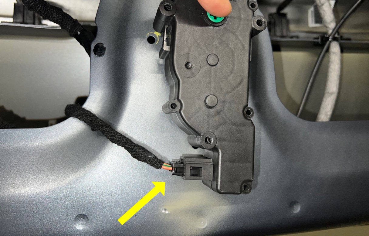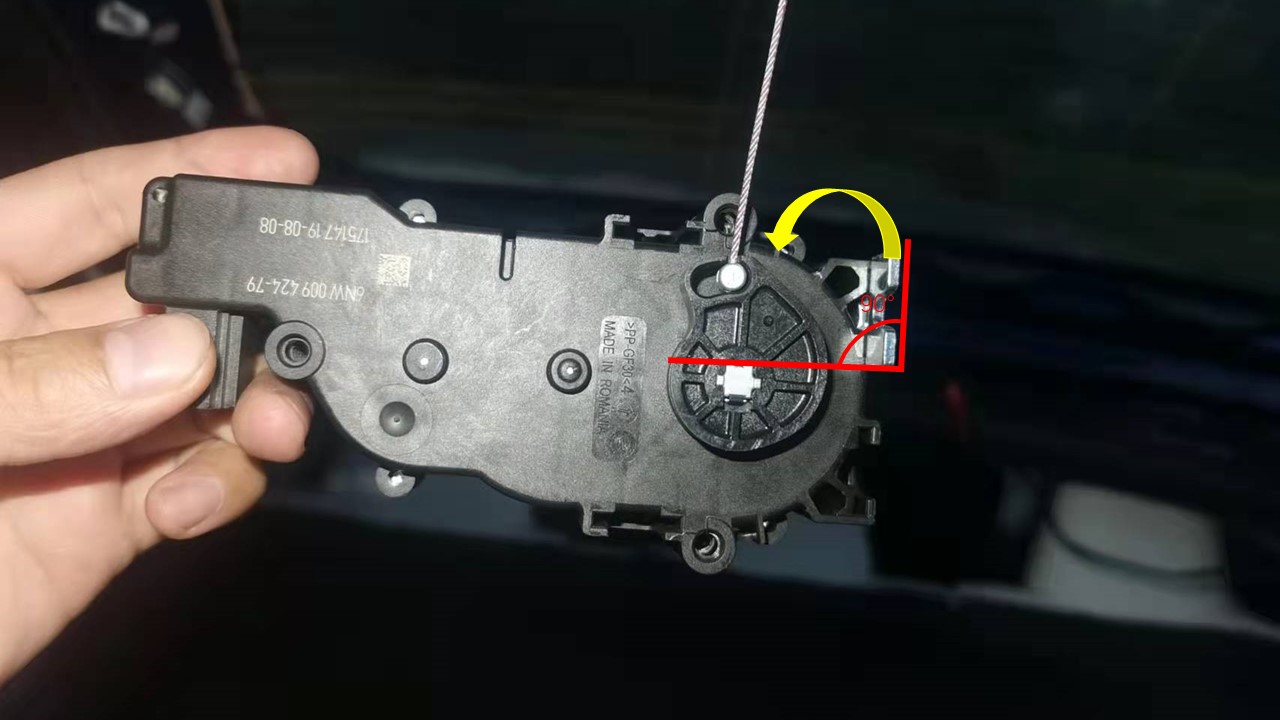 - Position cinching motor for access to latch release cable. Release cable from abutment and disconnect inner cable from motor.