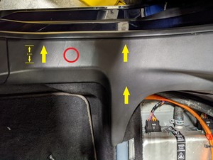 Install butyl patch squares onto openings for the front drive unit cables on the HV junction box to prevent dirt/water ingress