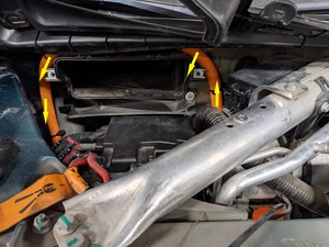 Note2x barrel clips, Move hose from covering HV junction box bolts